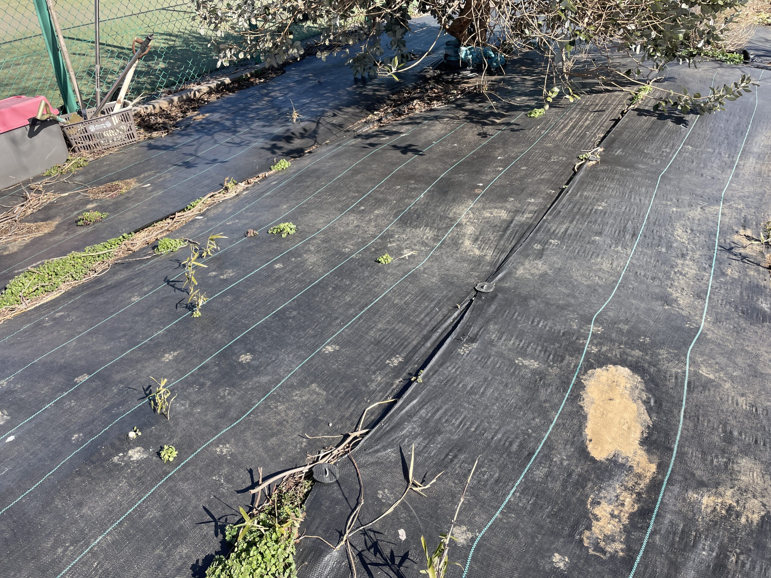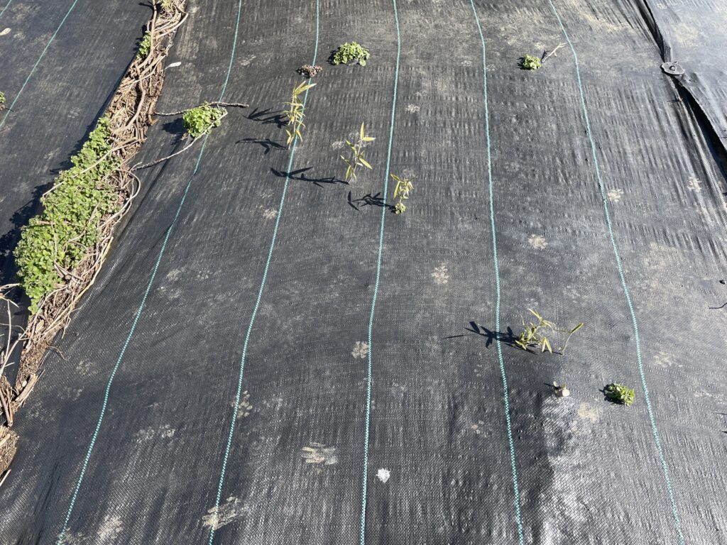 防草シートに模様を発見。
