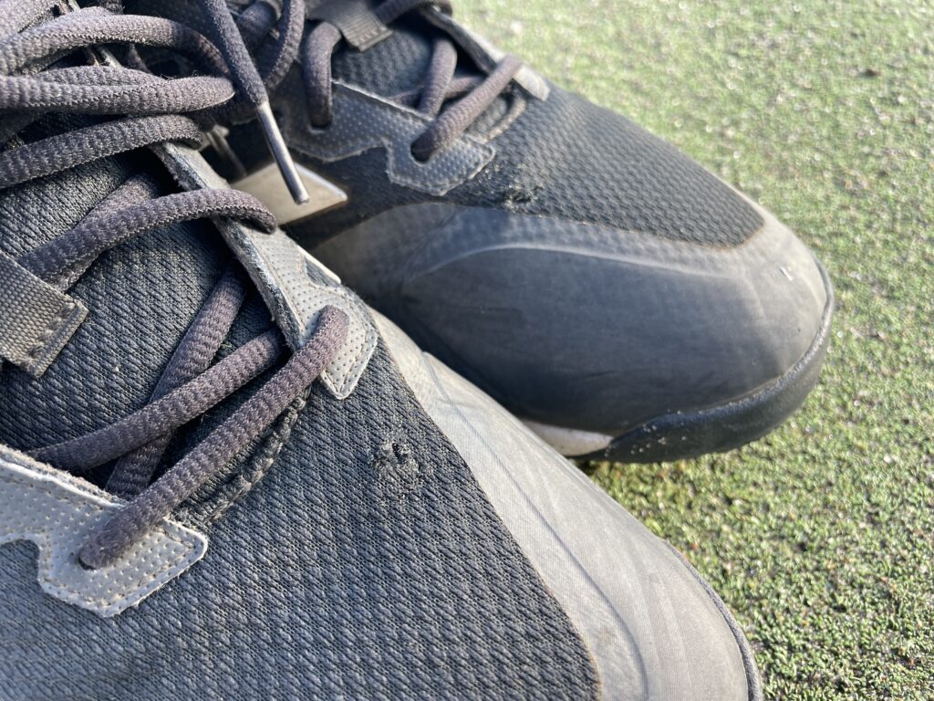 シューズの上の部分がほつれてる
