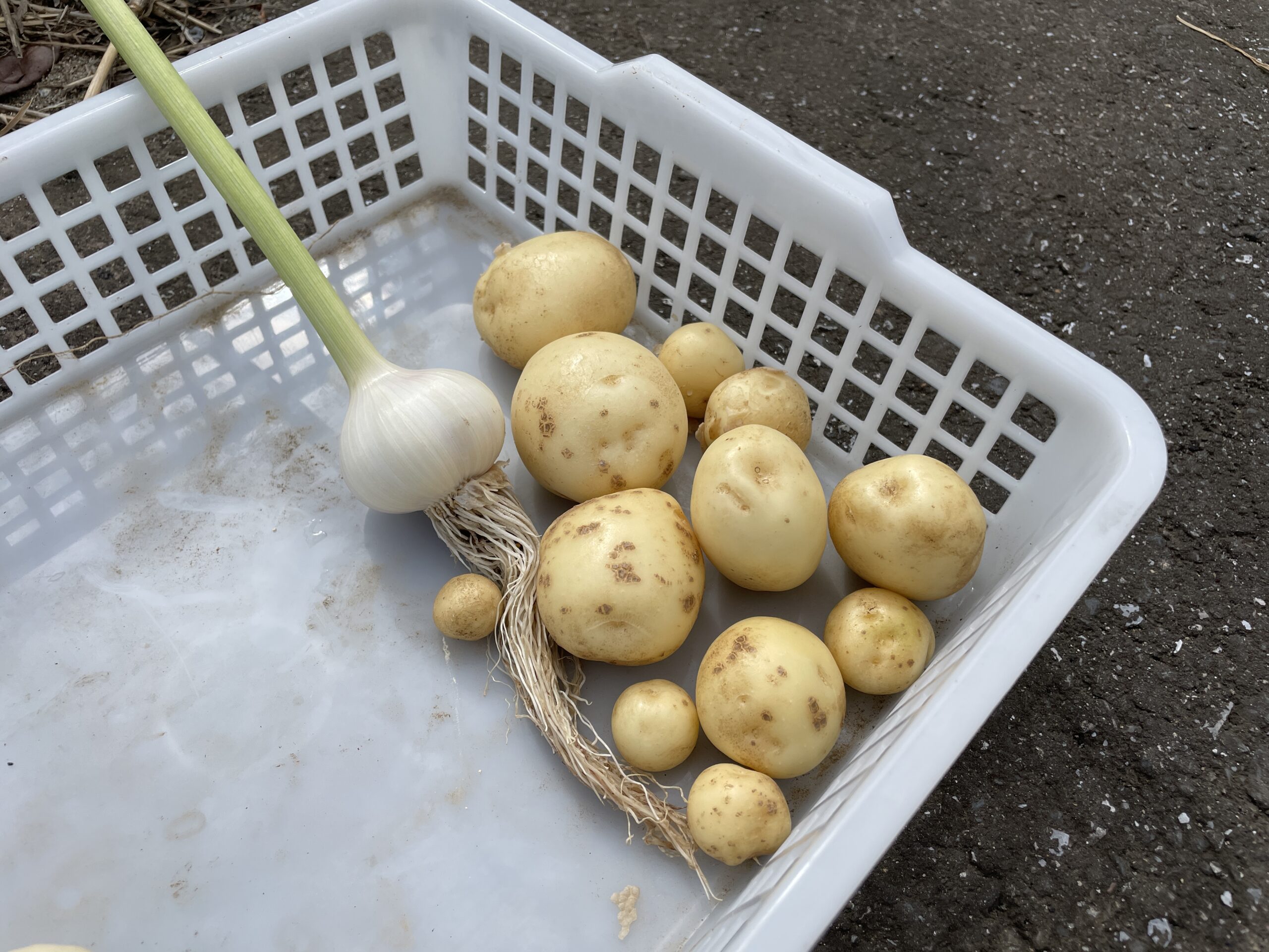 採れたにんにくとじゃがいも