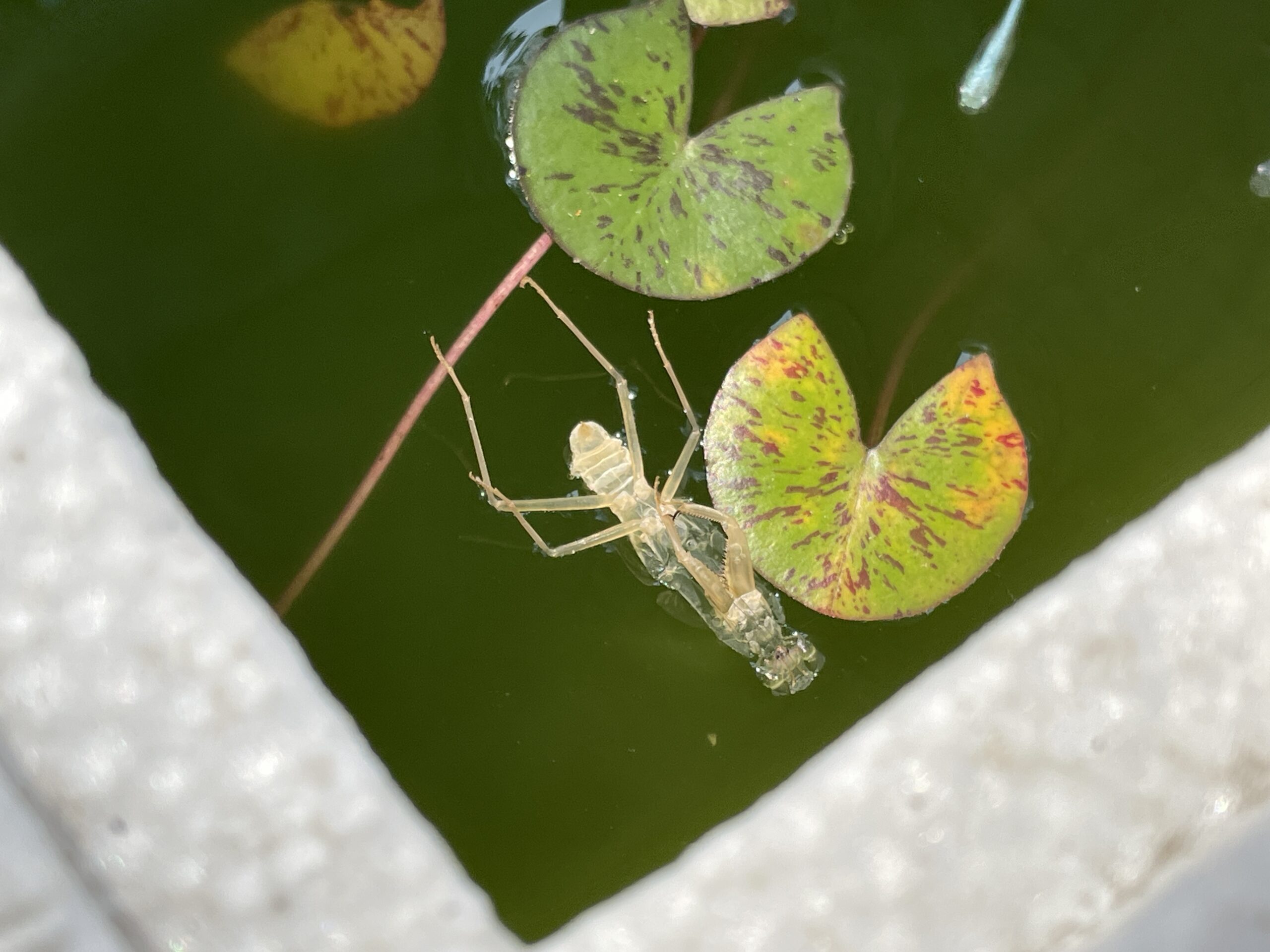 メダカ池にゴミが…