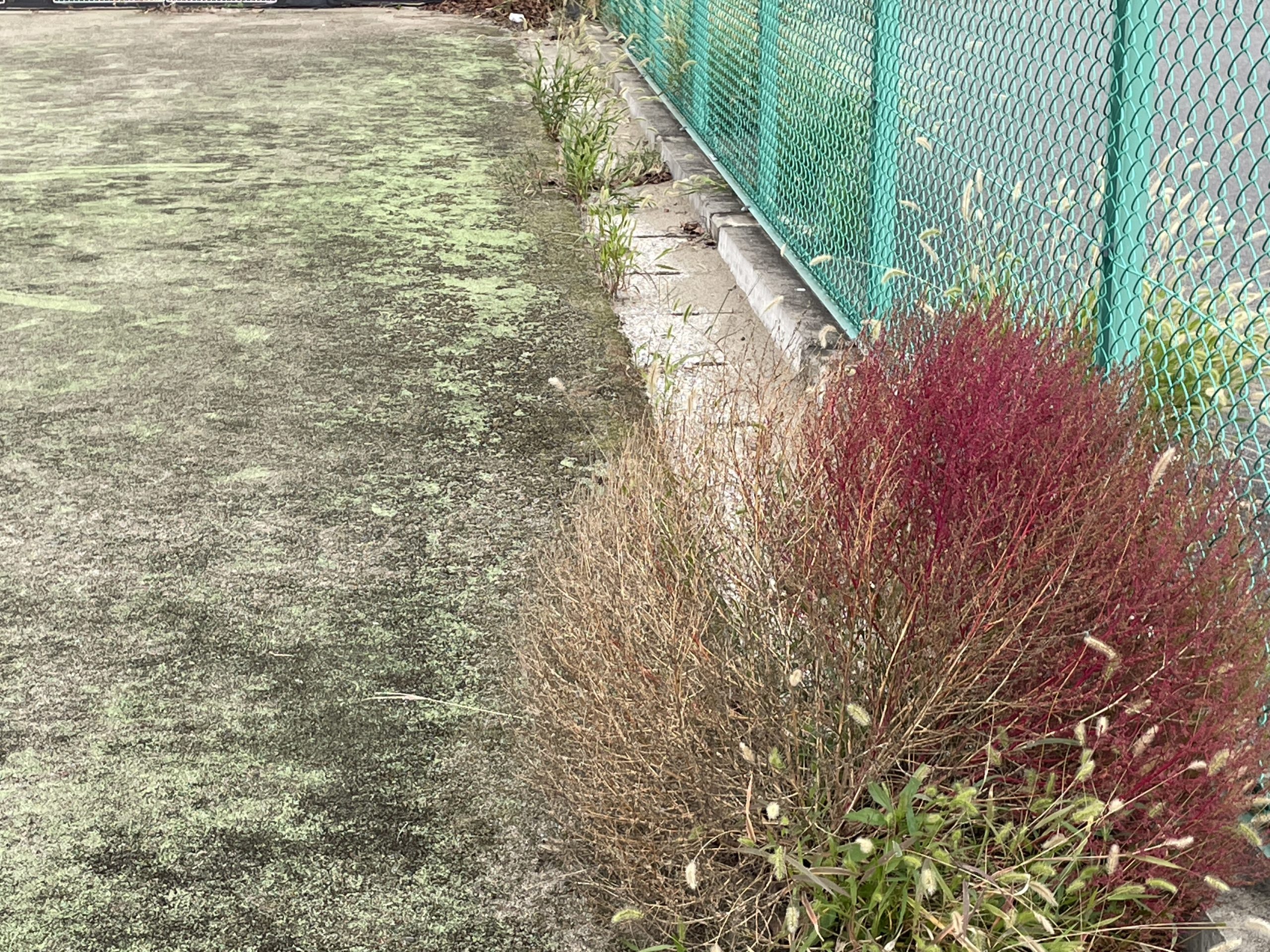 コート脇に生えている草取り